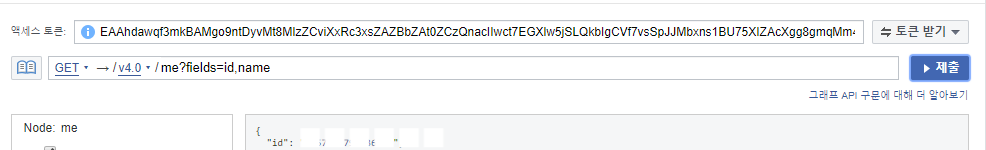 페이스북에 로그인중인 계정의 id와 name이 나오는데