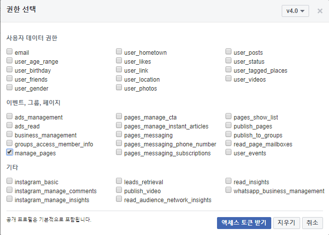 기본적으로 페이지 액세스 토큰 생성 방법은 아실 것 같네요.