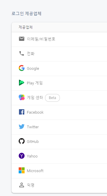 Google Firebase에 제공해주는 Oauth(소셜 로그인)서비스에는