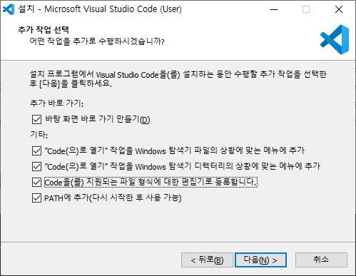 기호에 맞게 선택하신 뒤 다음을 눌러 설치를 진행해주세요!
