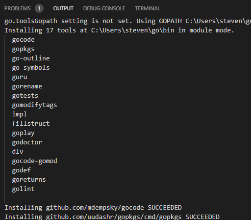 우측 하단에 보면 위와 같은 창이 떠있는데 Install All을 해주셔야 go를 실행할 수 있습니다.