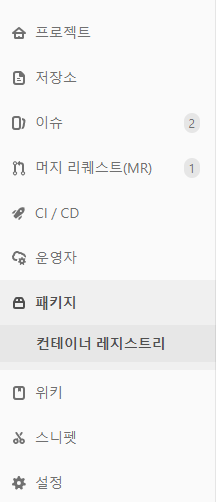 웹에서 Gitlab 프로젝트 -> 패키지 -> 컨테이너 레지스트리로 이동하면