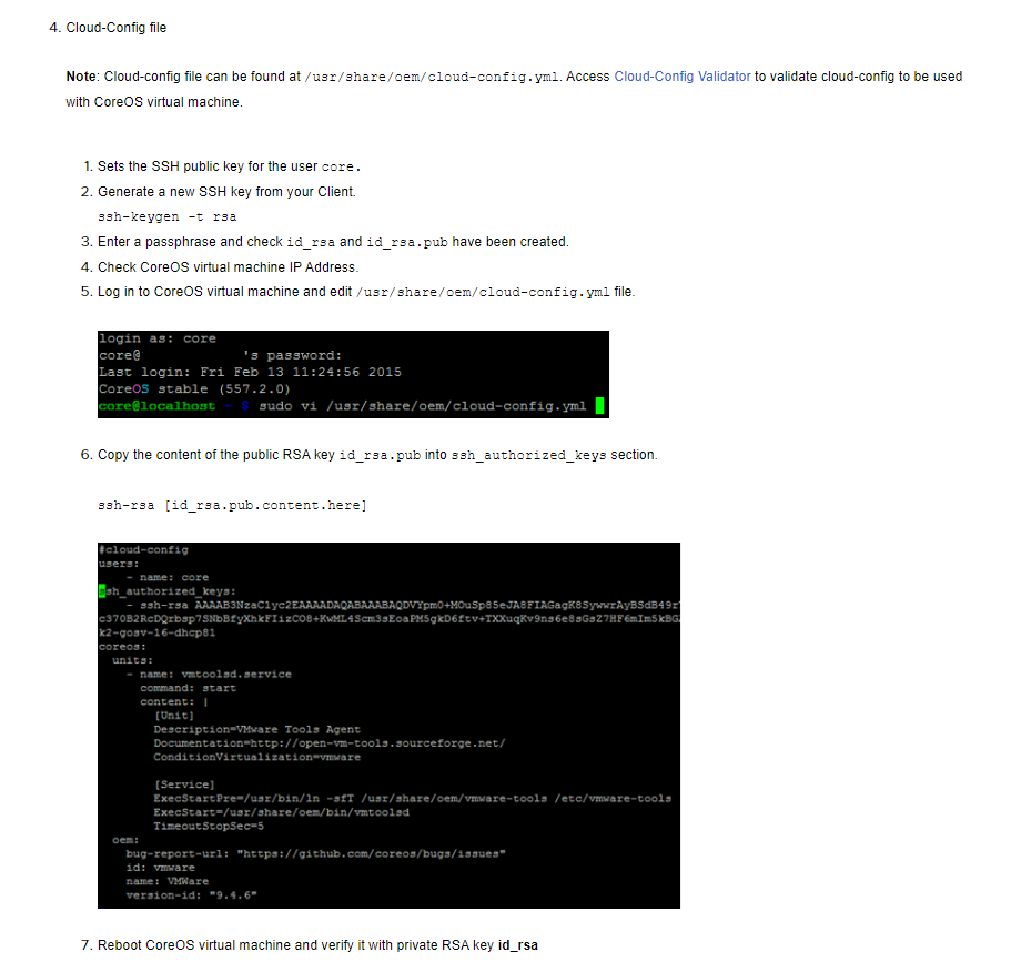 This article provides information about the installation, basic configuration of CoreOS ova on VMware ESXi, Workstation or Fusion and take CoreOS 557 release as
