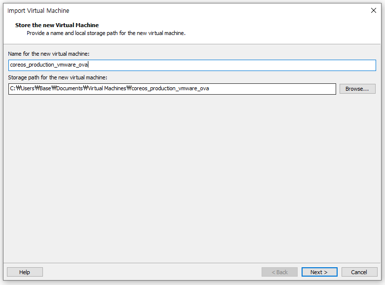 저장경로는 기존 여타 가상머신의 image나 vmx등이 저장되는 위치를 말합니다.