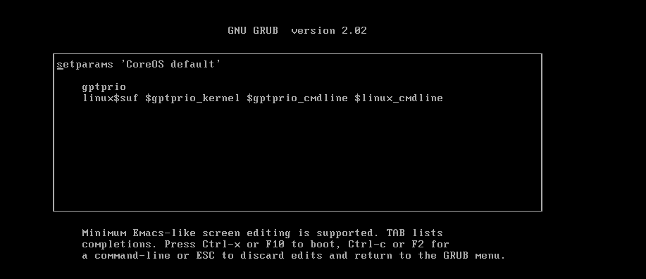 기존 리눅스를 사용하던 것 처럼 GRUB 부트로더에서 키보드 'E' 를 눌러 Editor 모드로 접근해서 젤 하단 뒷 부분에 coreos.autologin 을 작성해주시면 됩니다.